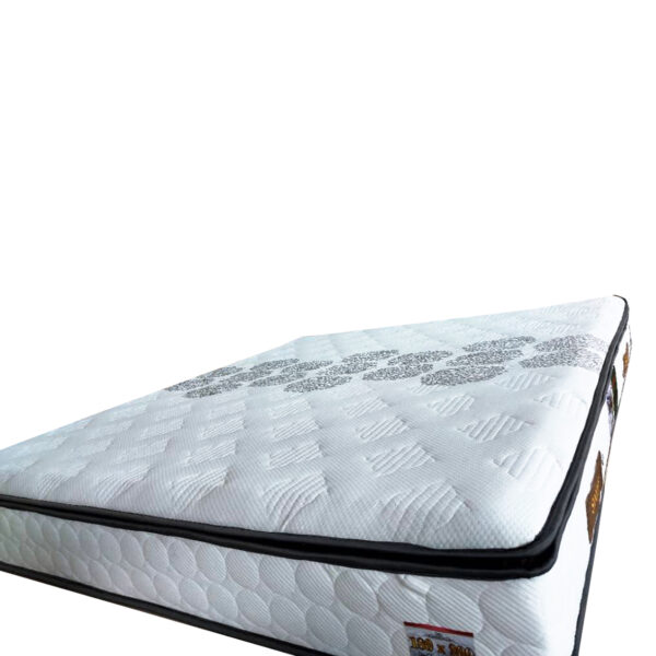 - پارچه گردباف صد درصد كتان الياف طبيعي ضد حساسيت و ضد باكتري لايه ضد حساسيت از جنس پلي استر٢٠٠ گرمي لايه اسفنج ١٠ ميلي گرمي لايه اسپان باند ١٤ ميلي گرمي لايه پد هوشمند با اسفنج ٥ سانتي با دانسيته ٣٠ كيلوگرم لايه ترموفلت لمينت شده با فشردگي ٢٠٠٠ گرم لايه ريباند ١٧ سانتي با دانسيته ٨٠ كيلوگرم داراي كپسول هاي تهويه هوا يكطرف سافت يكطرف هارد ارتفاع ٢٧ سانتي متر ٨ سال ضمانت